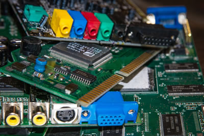 alte Generation, Platinen aus Computer / Servern: Mainboards, Grafikkarten, Soundkarten, Netzwerkkarten etc.  Anhaftungen wie Bleche, Rahmen und Kühlkörper müssen entfernt werden.