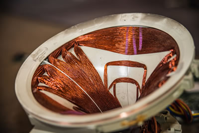 Ablenkeinheiten bzw. Ablenkspulen mit Kupferdraht aus alten Monitoren und Röhrenfernsehern.